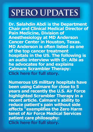 The Calmare® MC-5A medical device is able to provide relief from chronic neuropathic pain by overriding pain signals from damaged nerves. The active principle is not to inhibit pain transmission, but to substitute or override pain information with synthetic "non-pain" information. In many cases patients experience immediate pain relief. This FDA cleared, break-through medical treatment consists of ten 45-minute sessions in which the patient rests comfortably while the signal is delivered through non-invasive, surface electrodes on the skin. This means NO side effects associated with medications, injections or surgery.